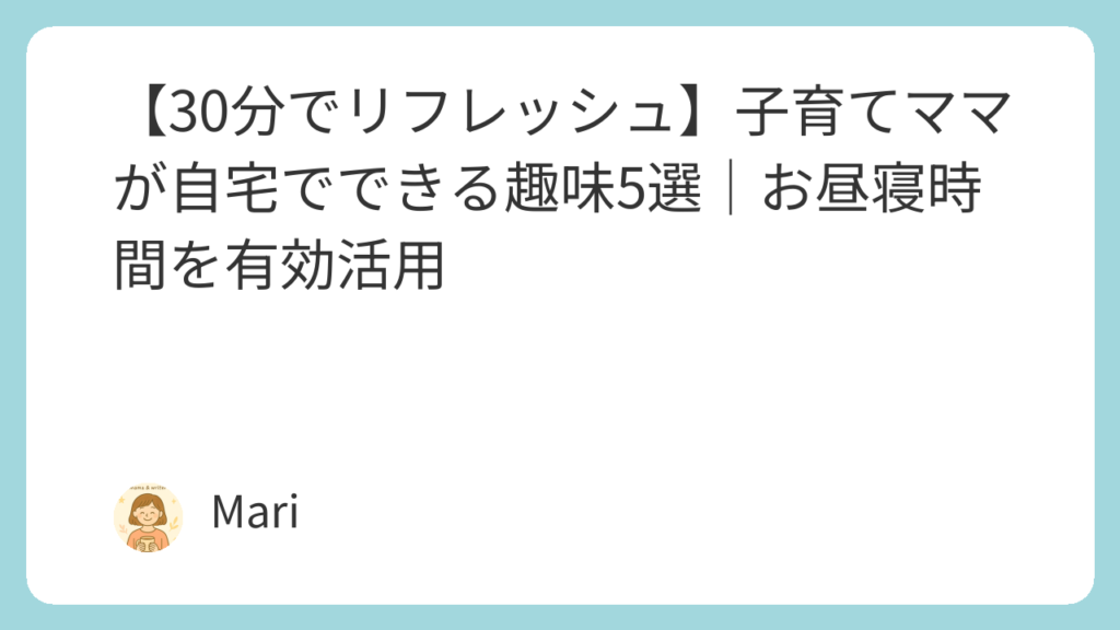 子育てや家事に追われる毎日の中で、ママにとって大切なのは「小さなリフレッシュ時間」。でも、エステや旅行などに頻繁に行けるわけではありませんよね。 そこで今回は、お金をかけなくてもできる、ママのためのプチ贅沢アイデアを10個ご紹介します。 1. ...